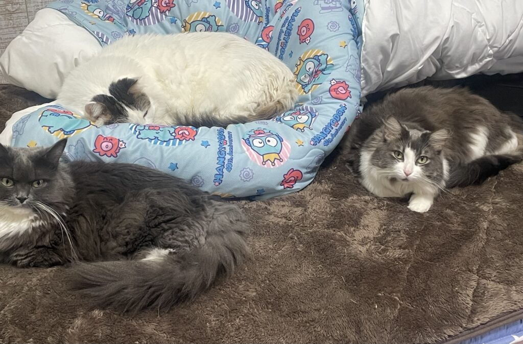 3匹で場所取り中の我が家の夜