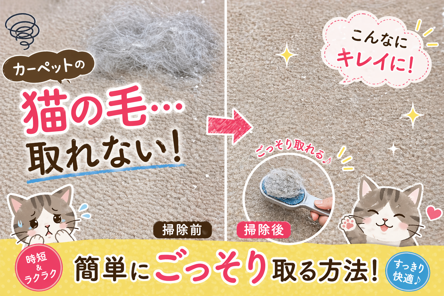 猫と暮らしていると、どうしても気になるのがカーペットに絡みつく猫の毛ですよね。