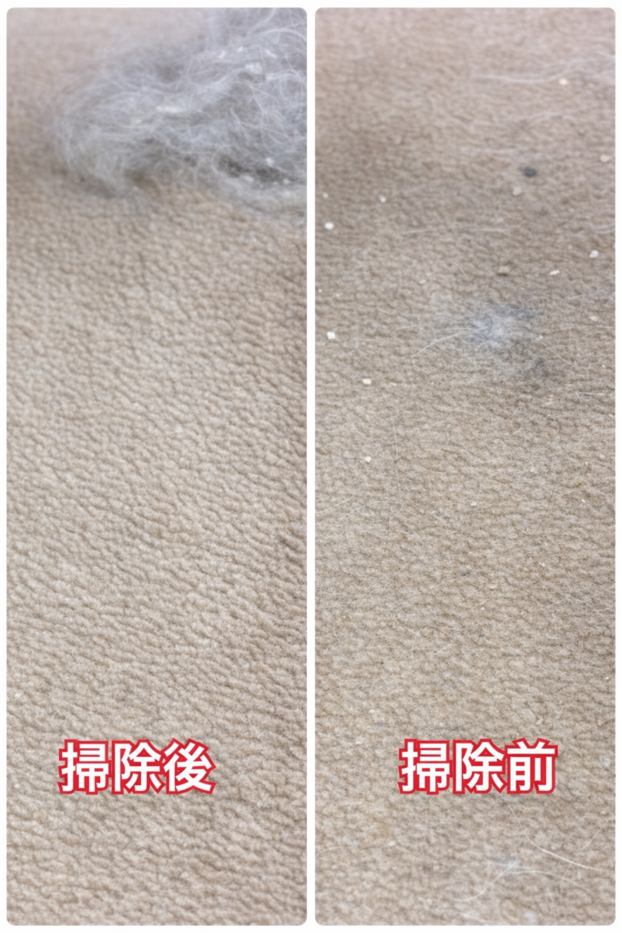 特にカーペットは繊維が細かいため、毛が入り込んでしまい、表面だけ掃除しても取りきれないことが多いです。