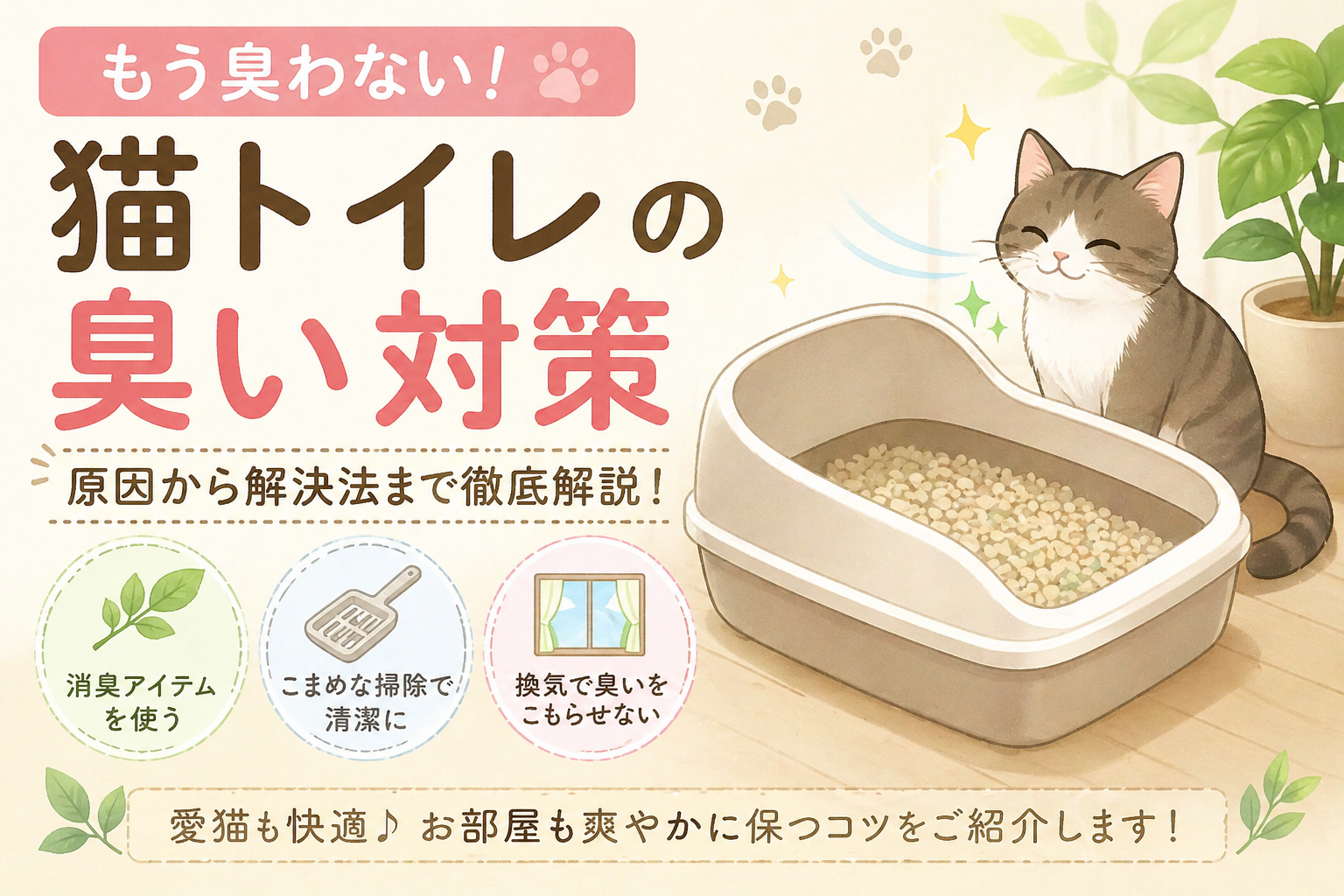 猫トイレの臭いは、少しの工夫で軽減できます。できることから試してみてくださいね。
