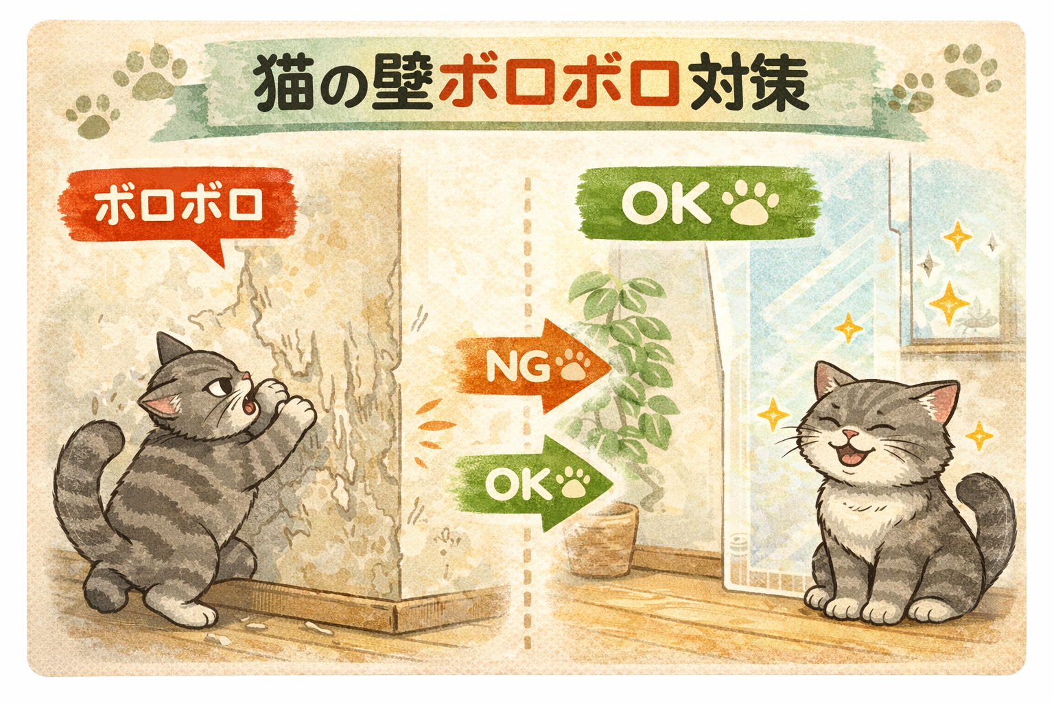 ①爪とぎ器を置いても、なぜか壁が狙われるミステリー